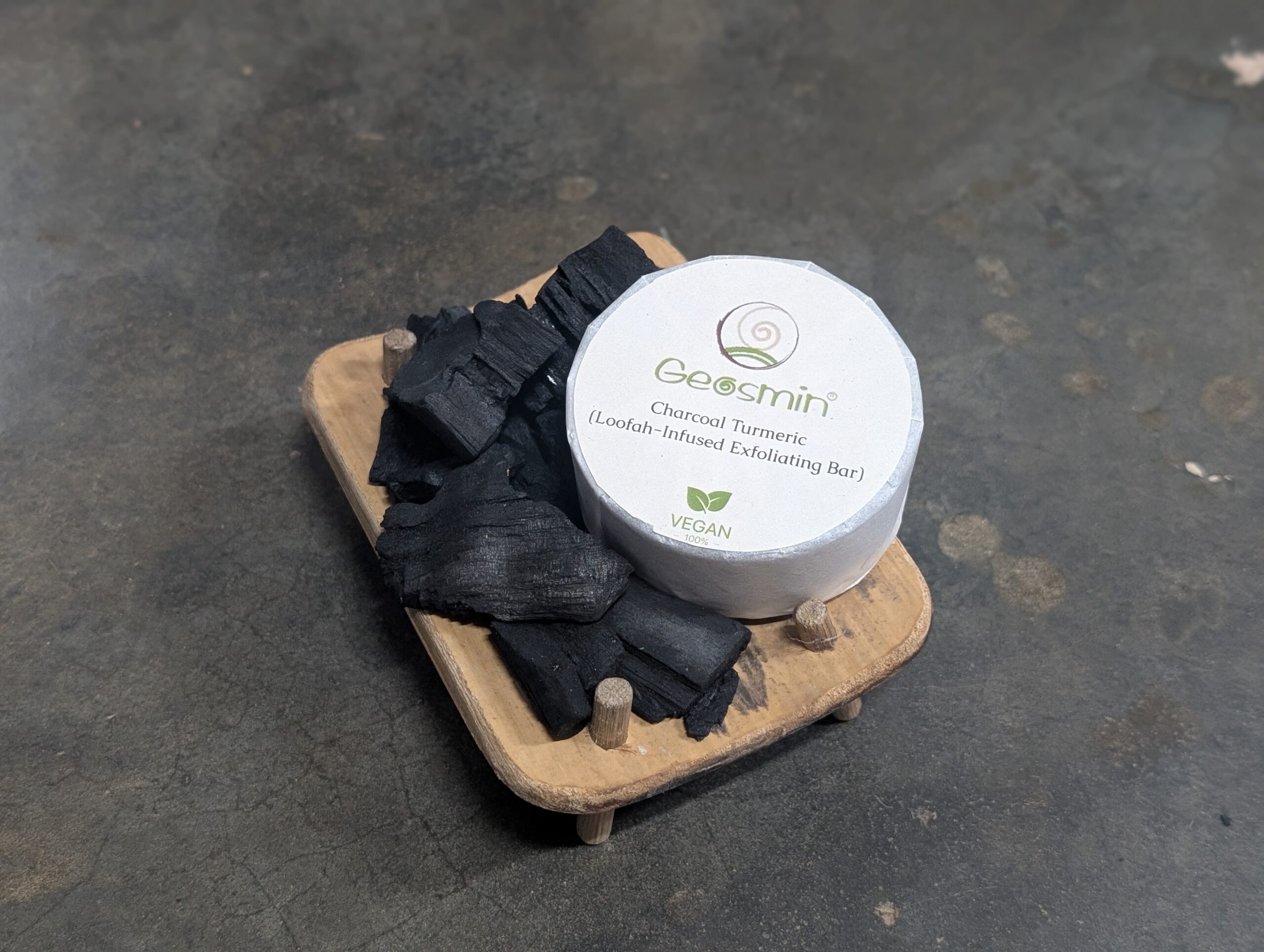 Geosmin Charcoal Turmeric – Loofah-Infused Exfoliating Bar